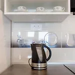 Une cuisine complète fournissent un micro-ondes et une bouilloire électrique.